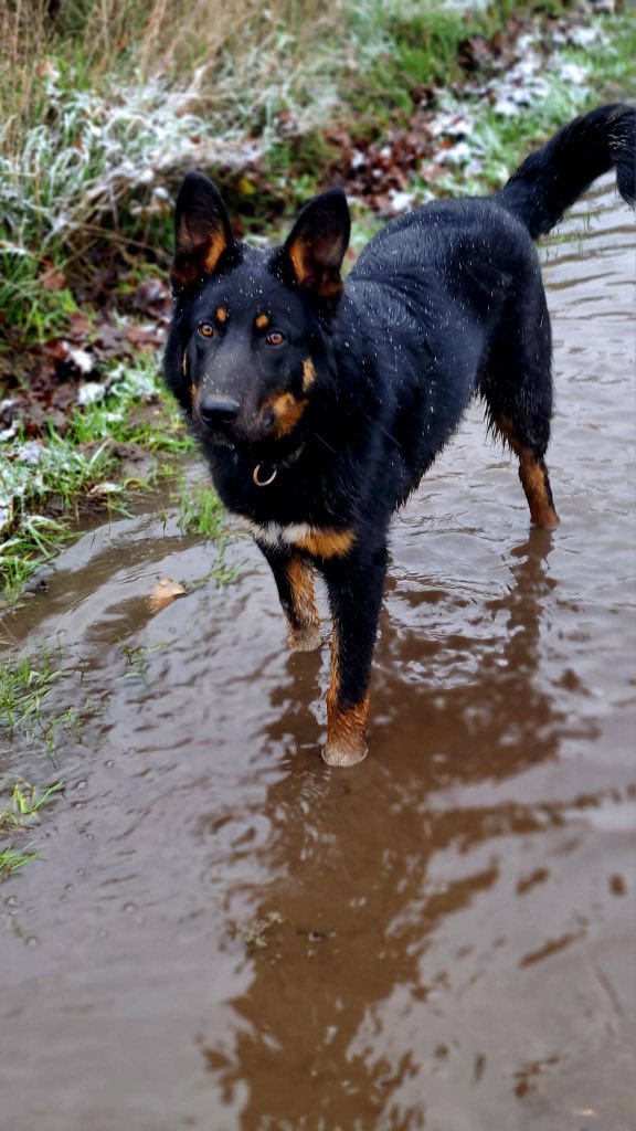 Titus adore les balades en liberté, les jeux de balle et de bâtons. Il devra encore apprendre la marche en laisse.